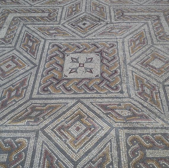 fundo do chão. E então vejo, tenho mesmo de ver. Padrões desenhados no chão.
